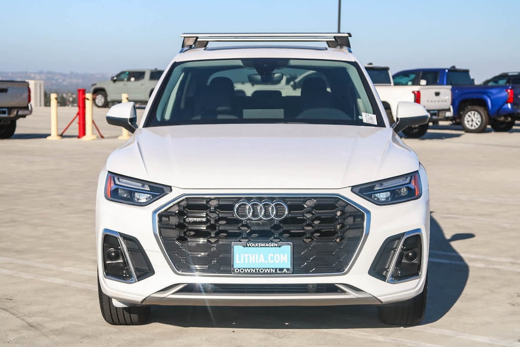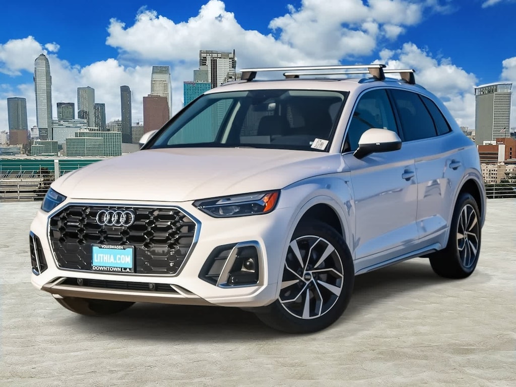 Convenience Package, Premium Plus Package (Adaptive Cruise Control w/Traffic Jam Assist, Audi Active Lane Assist, Audi Phone Box, Audi Virtual Cockpit Plus, Hands-On Detection Steering Wheel, Leatherette Covered Center Console & Door Armrests, Panoramic Sunroof, Power Adjustable Steering Column, Top View Camera System, and Wheels: 19 5-Double-Arm Design Bi-Color Finish), Q5 45 S line Premium Plus quattro, 4D Sport Utility, 2.0L Turbocharged, 7-Speed Automatic S tronic, quattro, Ibis White, Black w/Leather Seating Surfaces, 10 Speakers, 8-Way Power Driver and Passenger Seat, ABS brakes, Alloy wheels, Brake assist, Compass, Electronic Stability Control, Exterior Parking Camera Rear, Front dual zone A/C, Heated door mirrors, Heated front seats, Illuminated entry, Low tire pressure warning, Power Liftgate, Radio: Audi Sound System, Remote keyless entry with push button start, and Traction control